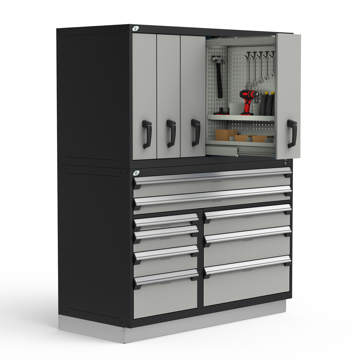 Protect tools from dust and damage with lockable industrial modular cabinets built for rugged shop environments.